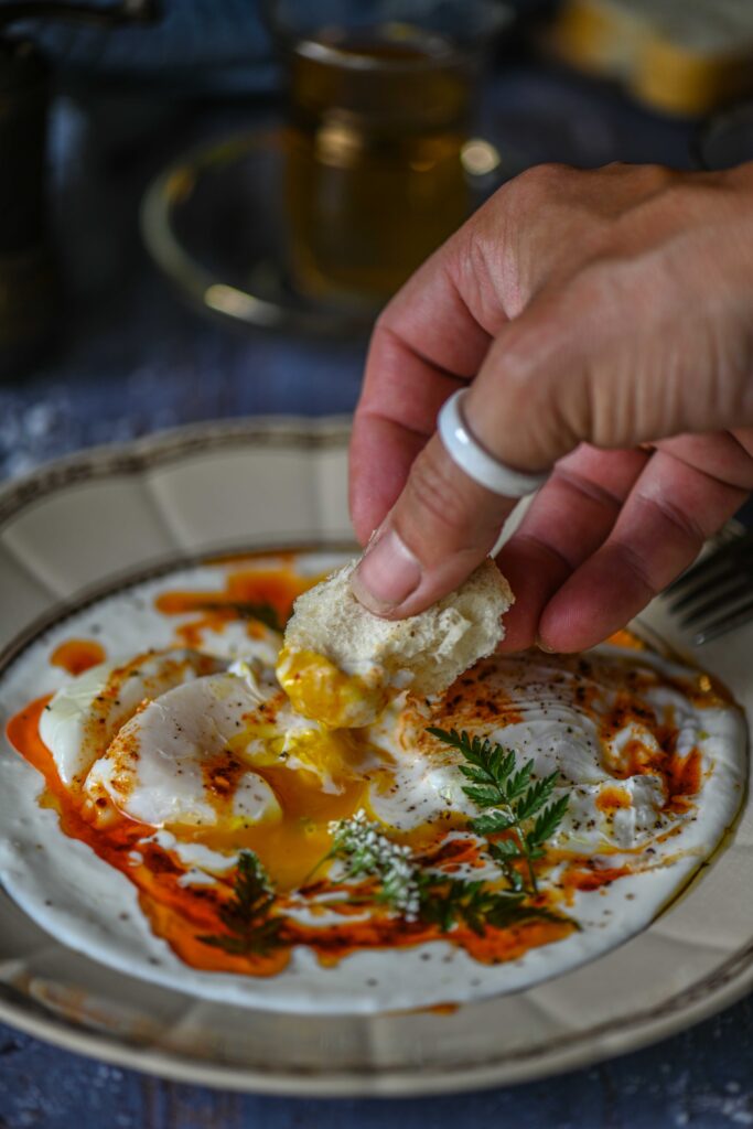 Sellisteks mõnusateks pikemateks hommikuteks, kui saab võtta aega nii enda kui pere jaoks, võiks teha üht väga mõnusat Türgist pärit toitu, kus küüslauguses jogurtikastmes on serveeritud pošeeritud muna, mis on üle kallatud tšilliõliga. Sellist toitu on mõnus röstitud saiaga siis kokku tõmmata, et nii vedel munakollane ja maitserikas kaste saaksid kõik kokku taldrikult riisutud.