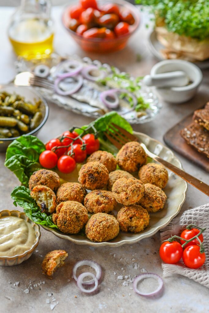 • Riivi kartulid peene riiviga. Lisa kartulimassile hakitud heeringas ja punane sibul. Sega juurde munad ning riivitud juust. Maitsesta soola ja pipra ning hakitud tilliga. Lisa ka riivsaia osade kaupa, kuni saad käte vahel vormitava taina. Vormi tainast Kreeka pähkli suurused pallikesed ning veereta neid siis riivsaia sees. Tõsta küpsetuspaberiga kaetud ahjuplaadile, pritsi või pintselda õliga ning küpseta 180 kraadi juures ca 20-25 minutit kuumaõhufritüüris, kuni kroketid on kuldsed. Teise võimalusena kuumuta kastruli põhjas õli ja küpseta õli sees kroketid kuldseks. Serveerides lisa meelepärast kastet.