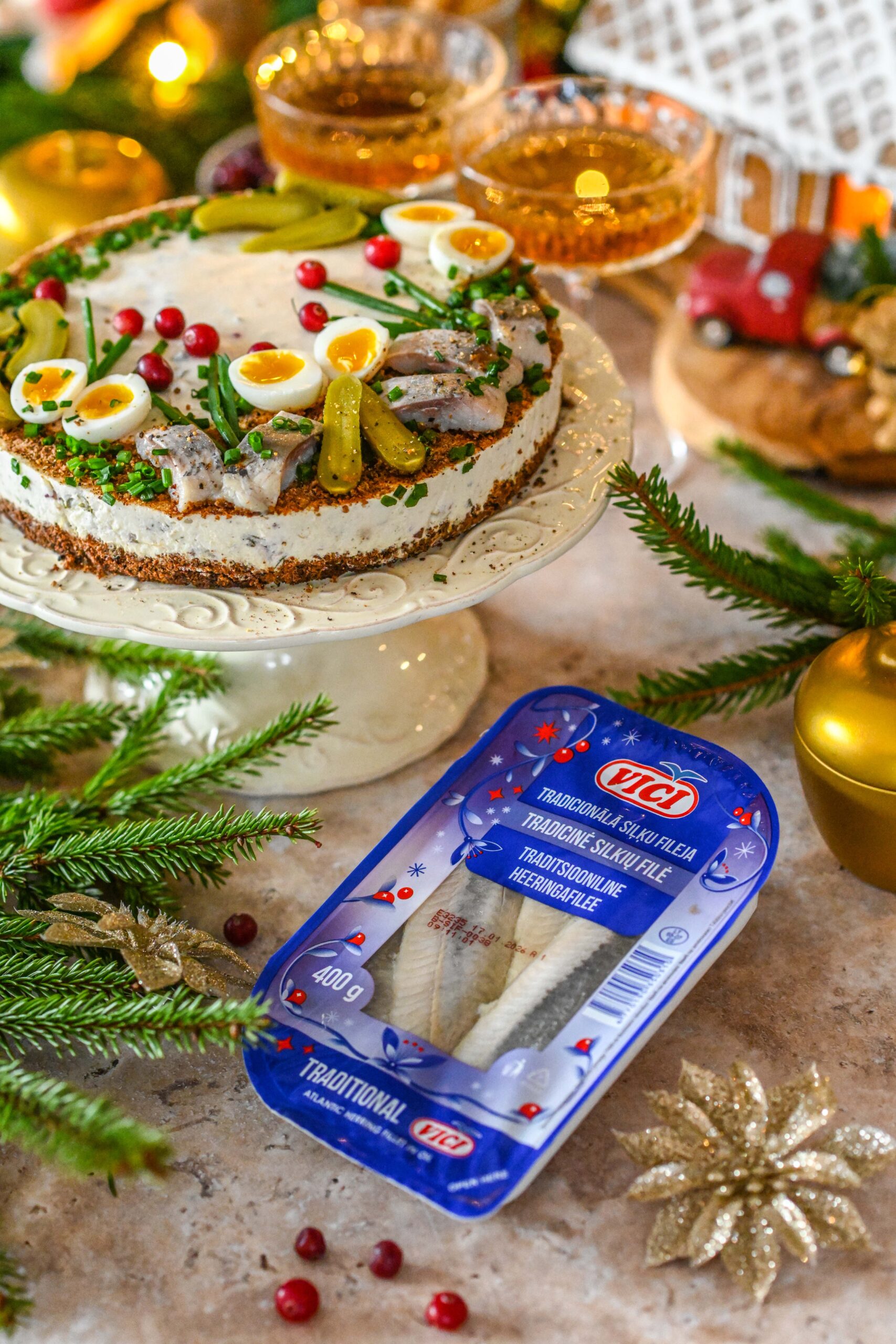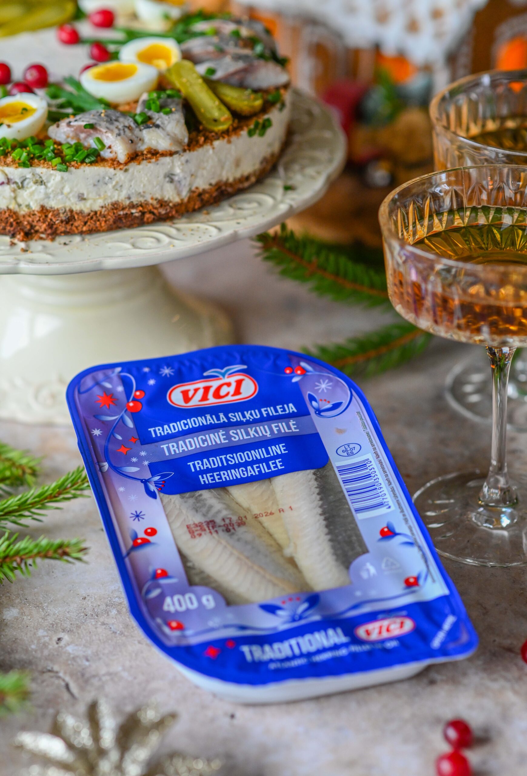 Heeringaks kasuta Viči klassikalist heeringat, mis oma mahlasuse ja täpselt paraja soolasusega aitab selle piduroa tõeliseks maitsestaariks disainida.