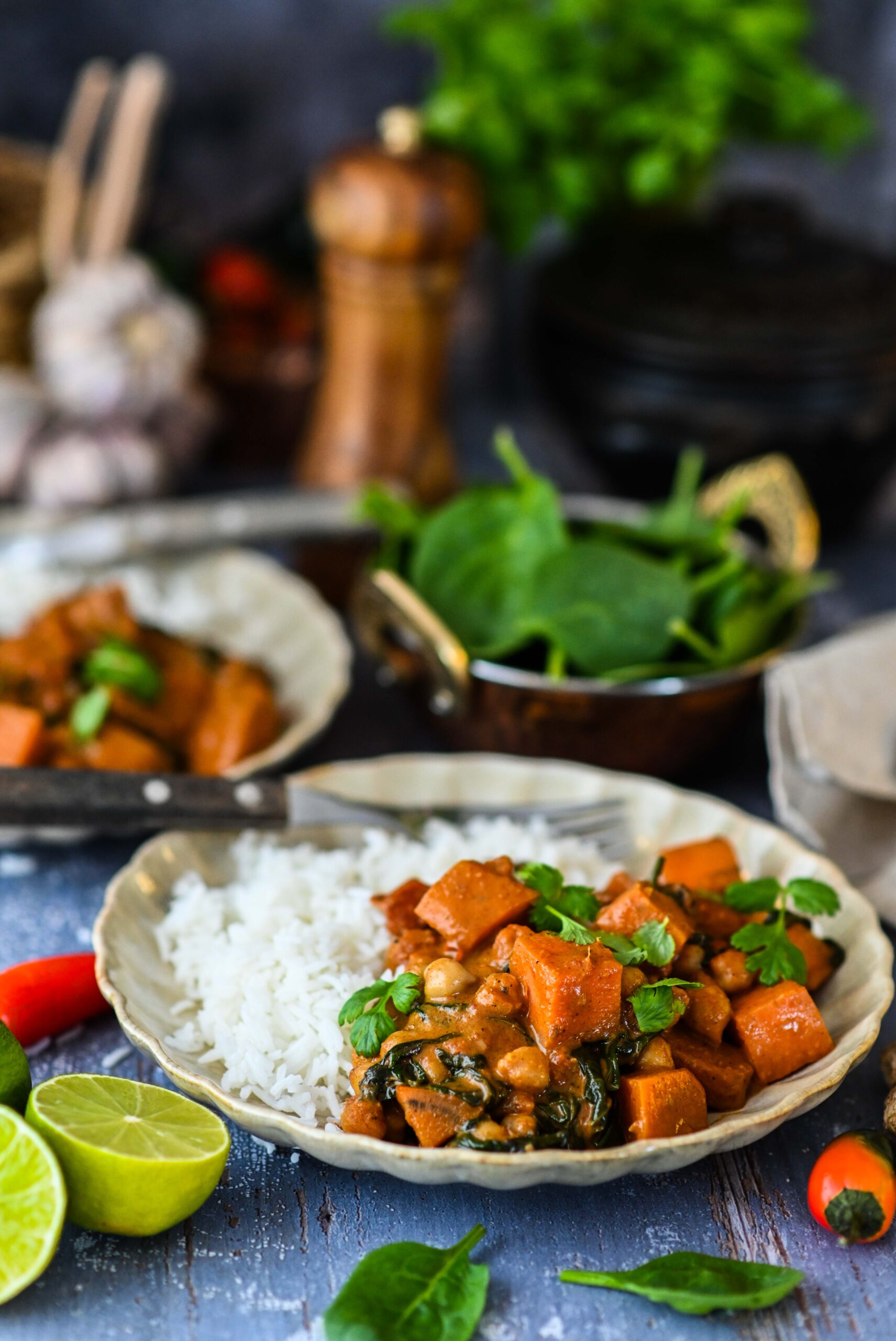 Bataadikarri on maitsev ja magusatest vürtsidest maitseküllust saanud täistaimne toit, mis toetab ka kõiki mitmekülgse ja tervist toetava toitumise põhimõtteid. Sellist karrit serveeri koos aurutatud basmati riisiga ja suure tõenäosusega naudivad seda rooga nii need, kes täistaimse toidusedeli järgijad kui ka need, kes igapäevaselt omnivoorid. Nagu karridele kohane on ka see toit parem isegi järgmisel päeval, kui kõik maitsed ja vürtsid on omavahel jõudnud maitseabielu sõlmida. Spinatit lisa siia karrisse lahkel käel, see aitab lisada värskust ja kergust muidu mõnusalt tummisele karriroale.