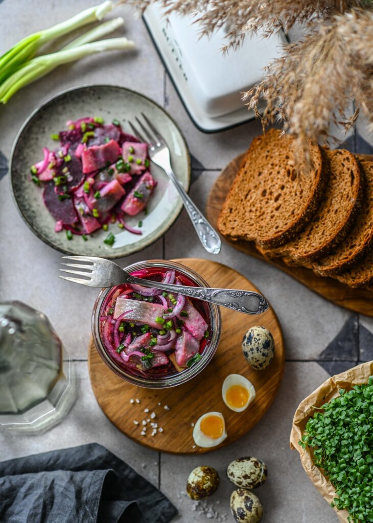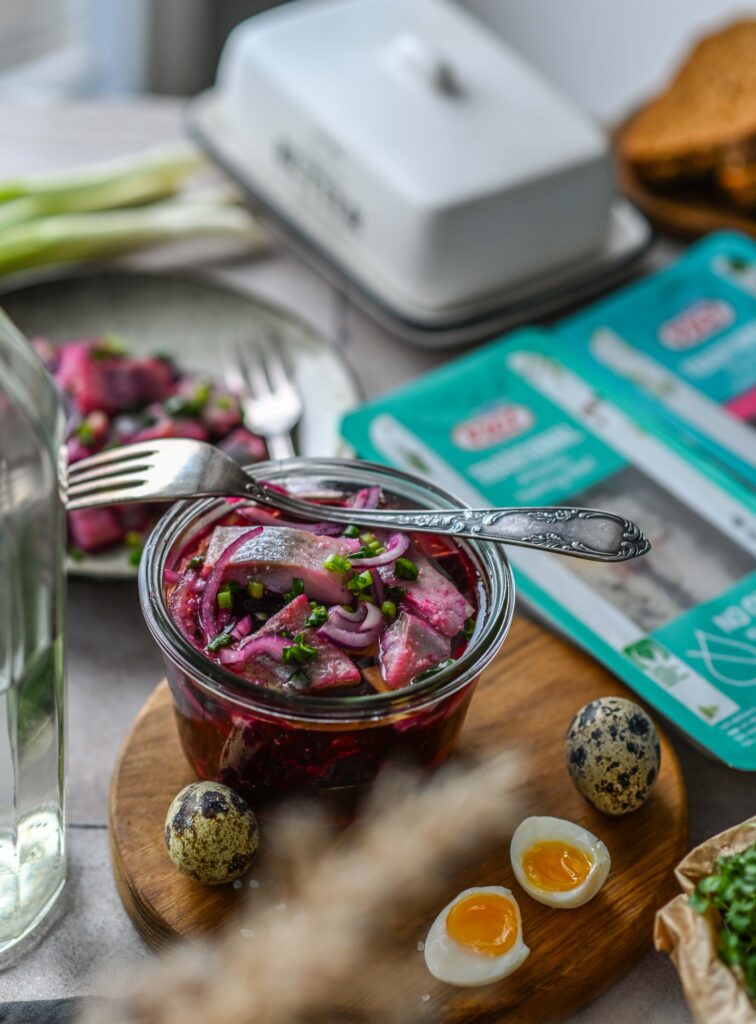 Peet, sibul ja heeringas on kooslus, millega ei saa väga libastuda ega eksida. Ka siin, kus heeringafilee on marineeritud peedi ja sibulaga ning lisamaitset andmas veel mädarõigas ja roheline sibul, on tulemuseks väga nauditav maitsekooslus, milles pettuma ei pea.