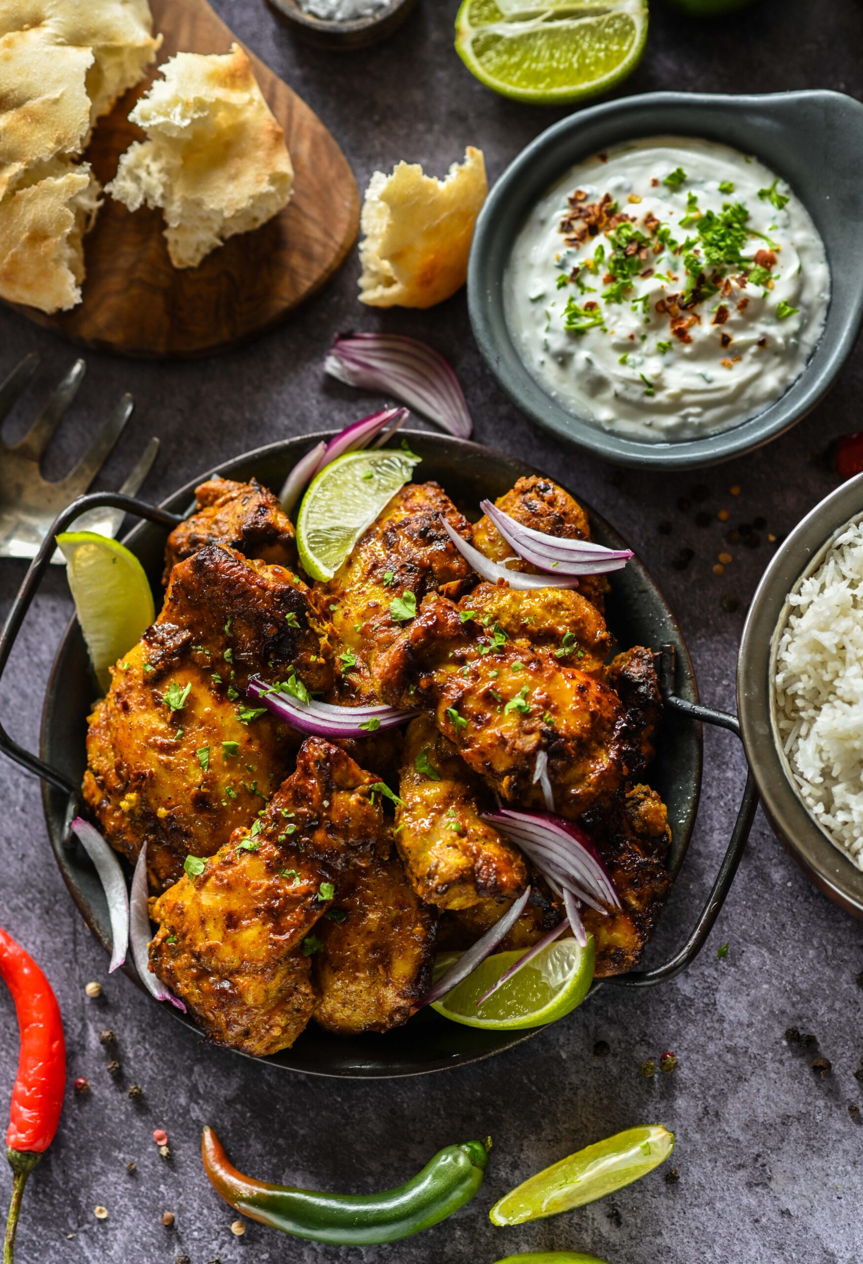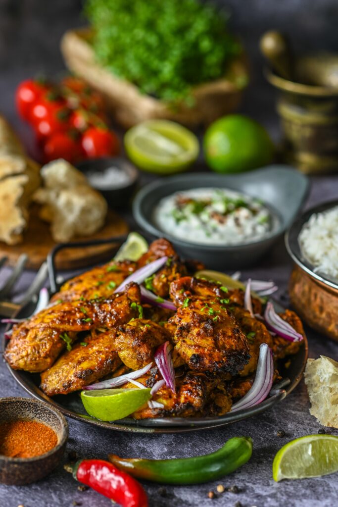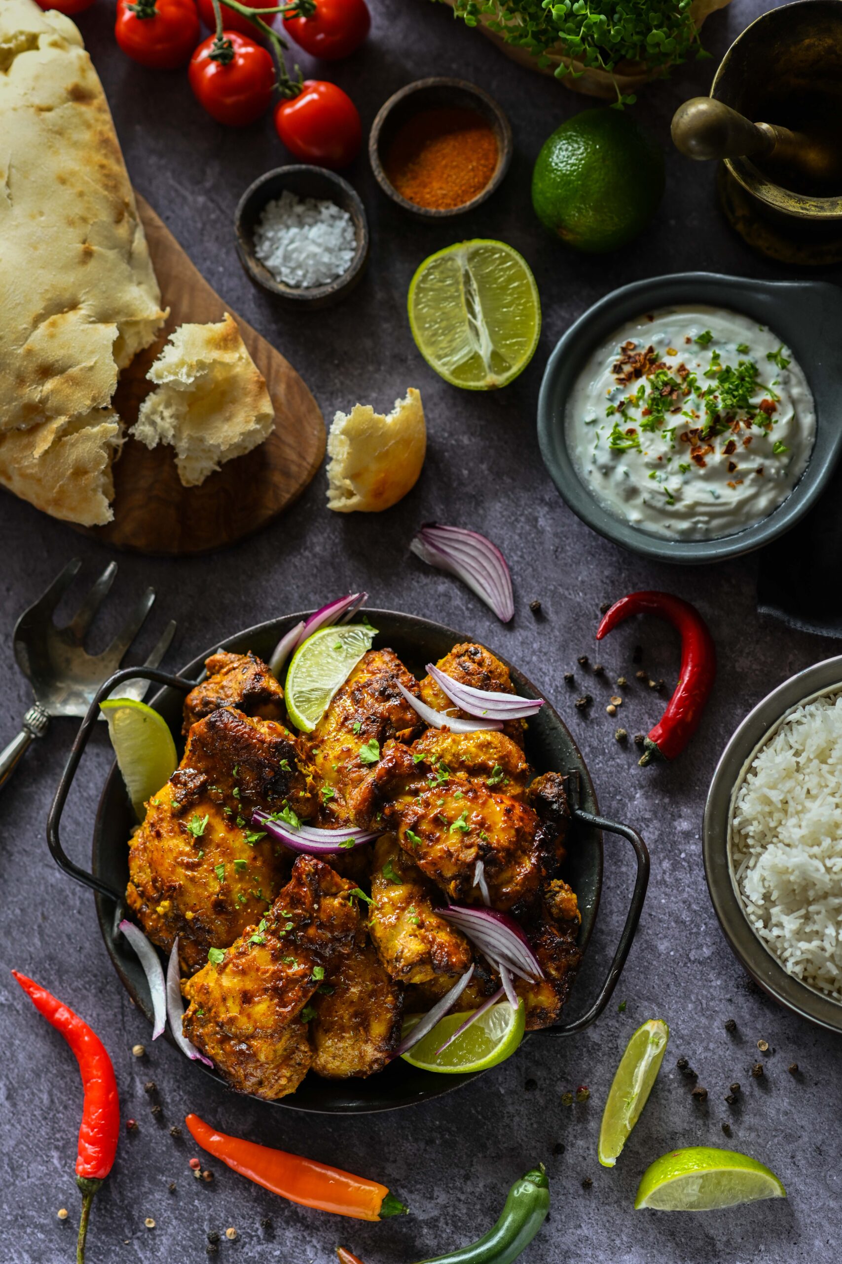 Tandoori kana peaks enne küpsetamist vürtsises jogurtimarinaadis mõned tunnid marineerima